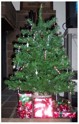 Everyone else in BlogLand is showing off their Christmas trees, so here’s my wee little tree with it’s wee little gifts underneath it. The gifts under the tree are gifts from me to TheBoy’s family which will be given on New Year’s Day at Christmas2. There are 2 more presents to be added, after I finish knitting them.