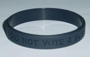 In the tradition of the Livestrong bracelets comes one that I can get behind. The brainchild of a family in Idaho, its a peaceful, unobtrusive way to show where your support lies. And best of all, a “sizable portion” of the proceeds will benefit organizations that I can get behind, “like MoveOn.org, Human Rights Watch, Sierra Club, People for the American Way, ACLU, Amnesty International, Greenpeace, Afghan Women’s Fund, Americans United for the Separation of Church and State., Planned Parenthood, etc.” So go, order yours today.