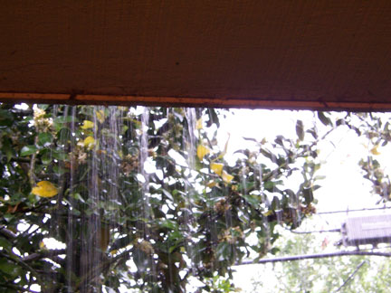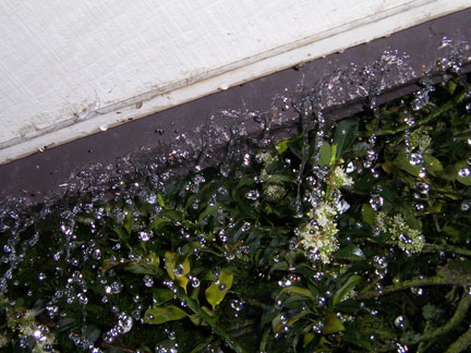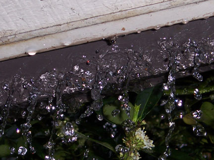 it pours…and my patio overflows…i got a new camera last weekend (a kodak ls753) and so my fool self went out in the rain to take photos (after i moved anything that the rain might ruin!} i got to watch my gutters overflow almost the whole length of the patio–guess i’ll be telling the apartment manager about that tomorrow.