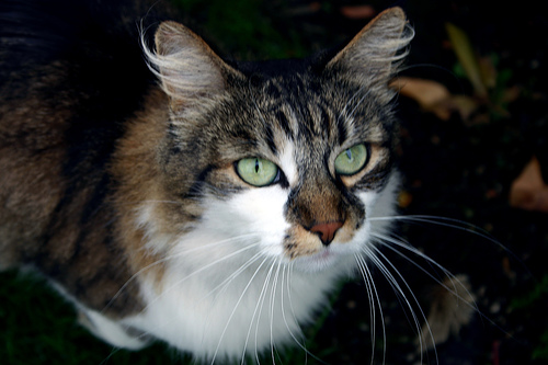 I’m not sure who this cat belongs to or if he even has a home [or really, if he is truly a he]. I think he’s beautiful, he’s friendly, he wants to spend time with us, and he has no front claws. That’s right, someone declawed him and has left it to him to find a way to defend himself outside. I won’t get into how I feel about declawing–suffice it to say that I’m not a fan–but I will be clear about how I feel about declawing outdoor cats. It is irresponsible, inappropriate and dangerous. This guy had a mostly healed cut on one ear as well as some small bumps under his fur but seemed to be physically okay otherwise. I will admit to wanting to pack him in the car and take him home with us. If I was 100% sure he was a stray I probably would. But since I’m not, we left him behind and just hope to see him when we’re back at work next week.
