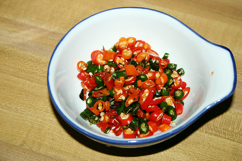 The photo above are Jodie’s fiancé’s favorite very spicy peppers. The frying of said peppers caused a lot of stinging eyes, so keep that in mind. The insides of eggrolls get very steamy and the capsaicin escapes all airborn-like. While extremely tasty, I dislike the burning, stinging eyes. I think my favorite eggroll combination of the night was cooked pork, cabbage, mushrooms, daikon radish,  and goat cheese. Delicious.