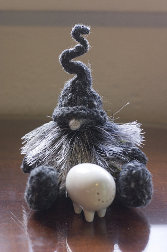 His tiny friend is a salt shaker, part of a set of tiny shakers given to us as a wedding gift. They were purchased at the MoMA Store in NYC, but I don’t see them on the website anymore.