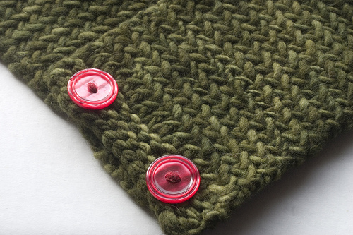 I dug through my collection of vintage buttons from Nanie’s jar and found these lovely red buttons which I thought were the perfect contrast to the green yarn. They were slightly different, which I think gave them a pretty awesome amount of charm.