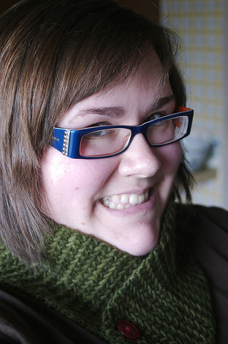 My final pay-it-forward item went to Emily (no link that I know of). I used some Malabrigo Worsted in Olive to knit this super cute neckwarmer. The pattern is free from Loop Knits. It is a great stashbuster, using somewhere around half the skein and working up in just a few days.