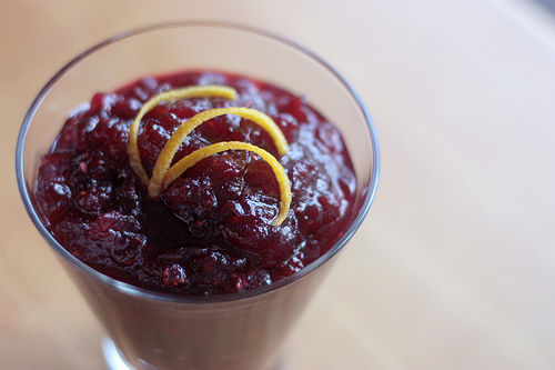 Marnie posted a link on twitter to this recipe on the Food Network this morning and even though we’re not celebrating Thanksgiving until Friday this year, I went ahead and immediately made some changes and tossed my berries in the oven. Just over an hour from start to finish, this sauce can be made quite a bit in advance (the recipe says it keeps a few weeks in the fridge) and takes almost no active time. The result is a rich sauce, tangy and sweet, with just a hint of spice. Perfect for any dinner, and you can easily adapt the flavors to suit your meal. You could try changing out the juice and almond extract for tequila and cayenne pepper, with lime zest in place of the orange for a spicy kick on your turkey.
