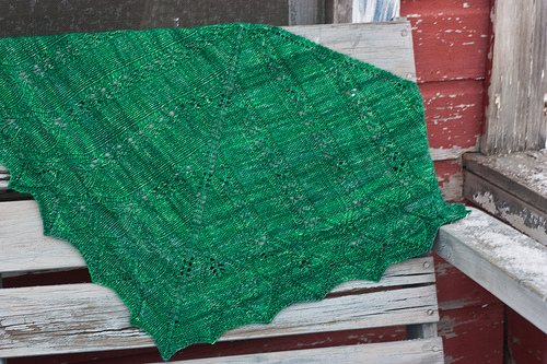 I ended up taking an impromptu trip east to stay with my mother for a week, which saved me a little money on postage as this was a gift for her. We got a little bit of snow while I was there, which is the perfect backdrop for this lovely shawl.